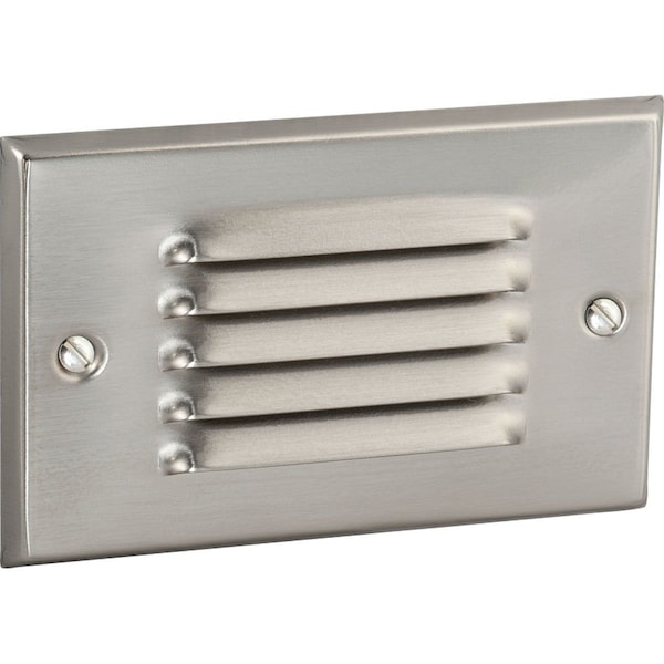 The 5w, 3000K step light/wall lights is a horizontal louvered mount that mounts in a single-gang wall box. 84+ CRI and 120 degree beam spread. Wet location listed so can be used indoor or outdoors. Brushed Nickel finish.