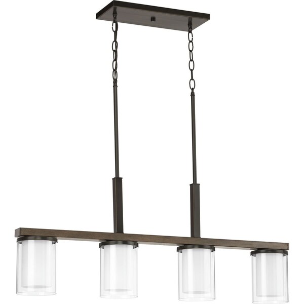 Inspire conversation at a dining table or kitchen island with the natural, modern design of the Mast four-light island providing gentle light from above. The pendant’s faux wood accents contrasted by Antique Bronze metal detailing creates an eye-catching, organic flavor ideal for coastal and modern farmhouse interiors.