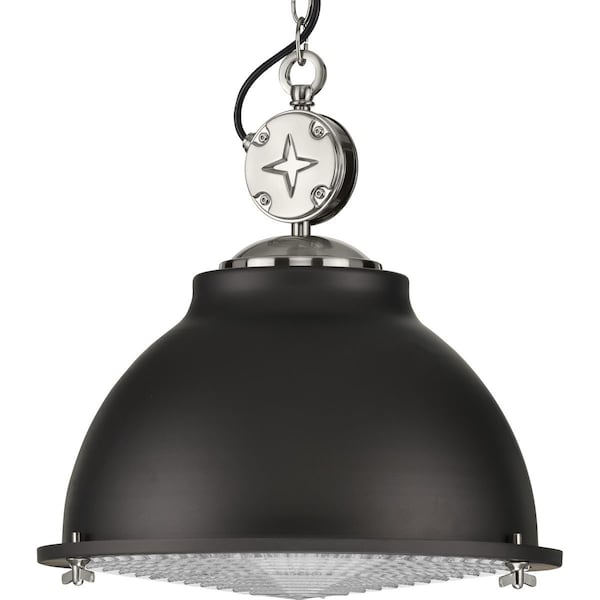 Inspired by vintage automobile engines, this pendant boasts a signature star motif for added industrial character. The smooth metal shade is coated in a beautiful graphite finish. The shade holds a prismatic glass diffuser primed for providing optimal task lighting.