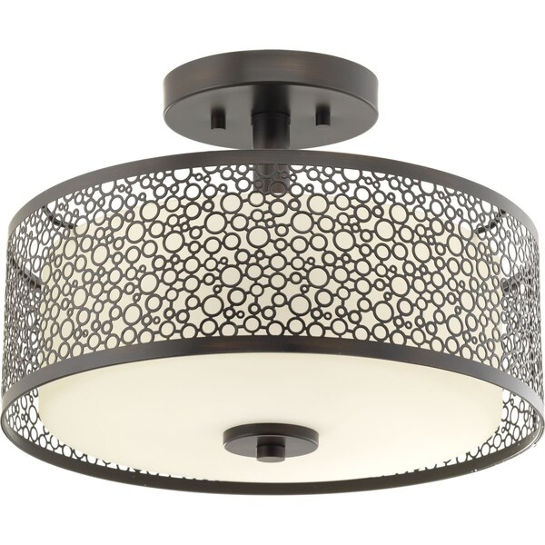 One-light semi-flush LED fixture features a concentric circular pattern in an Antique Bronze metal shade that surrounds natural parchment glass. 3000K, 90+ CRI 1,211 Lumens 71.2 lumens/watt per module (source).