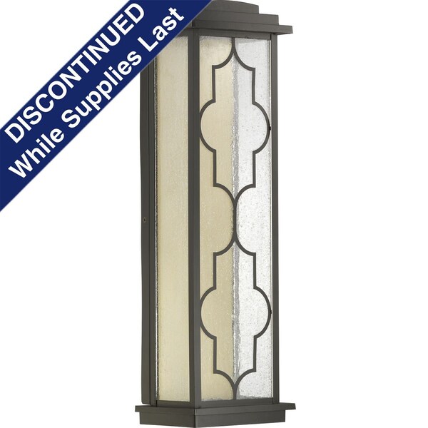 Northampton LED lanterns take a designer influenced approach for these updated one-light medium outdoor wall lantern. The distinctive styles provide a traditional accent to your home with striking textured glass in a classic pattern. An Architectural Bronze housing showcases clear seeded glass with a quatrefoil inspired metal pattern paired with a brass tone internal reflector.