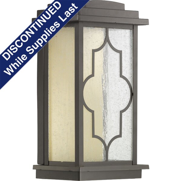 Northampton LED lanterns take a designer influenced approach for these updated one-light small outdoor wall lantern. The distinctive styles provide a traditional accent to your home with striking textured glass in a classic pattern. An Architectural Bronze housing showcases clear seeded glass with a quatrefoil inspired metal pattern paired with a brass tone internal reflector.