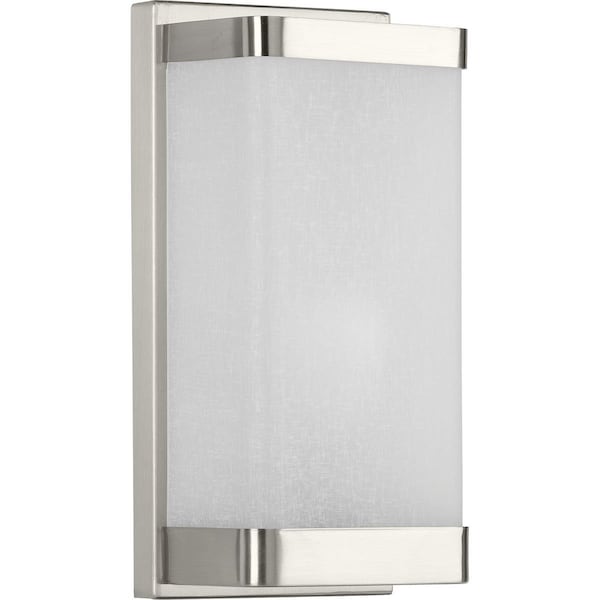 With its stylish simplicity, the Linen Glass Sconce is a fitting, classic choice for adding extra lighting to any transitional interior. A Brushed Nickel frame and metal bands hold a clean, etched glass shade in its place as it emits soft, comfortable light wherever it calls home.