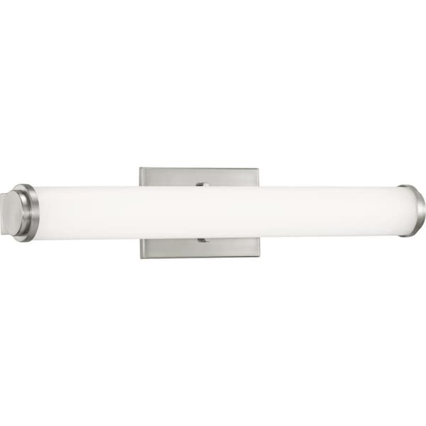 Featuring a cylindrical acrylic diffuser and a simple rectangular back plate, Phase 1.1 Collection 24in. linear bath bar accommodates residential, light commercial and multi-family applications. An integrated LED source provides uniform illumination, as well as energy and cost savings benefits. Can be installed vertically or horizontally.