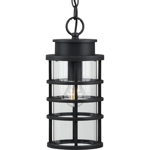 This hanging lantern distills both industrial and artisan influences with its signature ribbed black frame constructed from durable corrosion-resistant, composite polymer. Inside the ribs rests an elongated, clear glass shade that adds to the light fixture's modern flair. The design's blend of industrial and coastal inspiration makes it a perfect light fixture for updating your favorite spaces in and around your home. DURASHIELD by Progress Lighting is built to last. Constructed from a composite material with UV protection, DURASHIELD holds up even in the harshest weather conditions. This high-performance finish has a 5-year warranty and is resistant to rust, corrosion, and fading.
