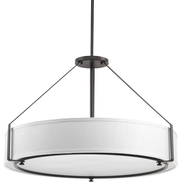 The six-light pendant offers a sleek metal frame that supports a low-slung shade to create Ratio’s casual modern style. The frame’s proportion to the white linen drum shade evokes a perfect ratio for lighting. Includes a polished glass exterior, etched glass interior diffuser that offers an elegant appeal and is easier to clean – offering both fashion and function. Antique Bronze finish.