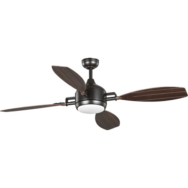 Transform any outdoor space into a cozy country abode with the charming rustic character of this ceiling fan. Four boat oar-inspired blades attach to a smooth center that features an LED light source for friendly illumination as needed. The fan is coated in a warm architectural bronze finish sure to cool your home with a refreshing breeze wrapped in country character.