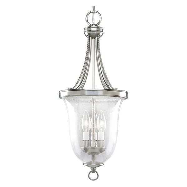 Seeded Glass 3-Light Foyer, 60 W, Brushed Nickel