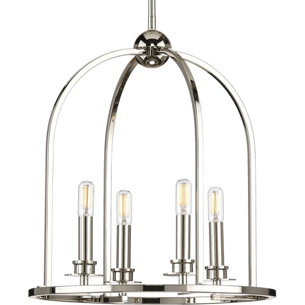 Satisfy any unsatiated visual appetite hungry for a rich lighting experience with the Seneca four-light foyer. Four enchanting Polished Nickel arms extend from the simple orb that crowns the fixture. Classic candelabra lights ornament the smooth, round base, manifesting an overall reflective shine that’s just right for entryways, dining tables, and kitchen islands in modern farmhouse and luxe settings.