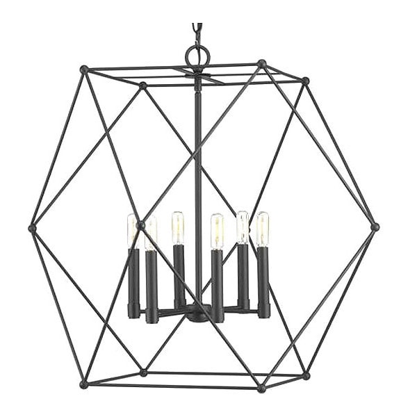 Spatial showcases a modern form that complements Urban Industrial and Bohemian styles. Overscaled geometric frames feature designs inspired by metal trusses and the art of engineering. A Matte Black finish is highlighted by clear globe shades or open candles. Chandelier and pendant options are ideal for foyers and entryways, while vanity fixtures complement modern spa-like bath suites