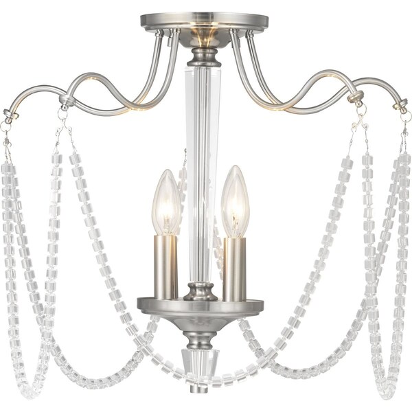 With a glamorous and modern appeal, the Stratham Collection’s four-light semi flush convertible fixture features a sparkling string of cylindrical drops and a stunning, faceted K9 glass column. Opulent accent finials complete well-executed design to add dimension and overall depth for modern, luxury homes.