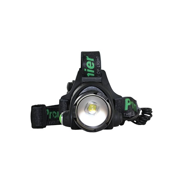 Promier, 800 Lumen Head Lamp, 1 Size Fits Most Head Strap, Quality Machined Aluminum Body, Push Pull Focusing Beam, Dual OnOff Buttons, 2 Modes HiLow, Uses 4 AA Alkaline Batteries, Included