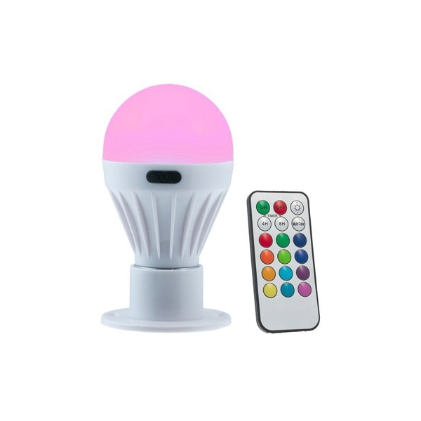 Color Changing, Remote Controlled Porta Bulb, 12 Colors, 4 Modes, 3M Tape On Base Magnetic Base On Bulb, Uses 3 AAA SHD Batteries, Included