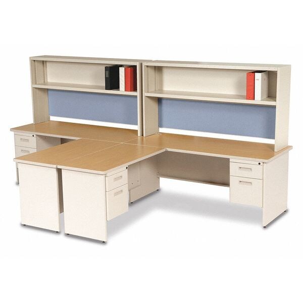 Workstation Desk, 78" D, 144" W, 65" H, Pumice/Oak, Melamine Laminate (Discontinued)