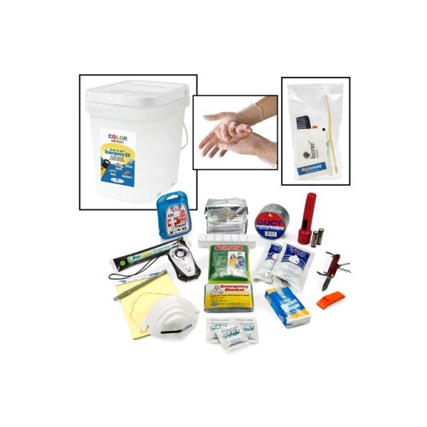 The ProPac Grab and Go Emergency Kit contains 17 safety and survival items in a durable, weather resistant 2.5 gallon plastic pail with handle and tamper-evident sealed lid. Includes water, food and hygiene items. This kit is perfect for families, travelers, outdoor enthusiasts, seniors, home, office, school, vehicle, boating.