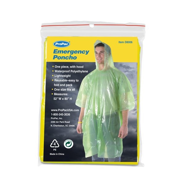 Emergency rain poncho is waterproof and lightweight with built in hood