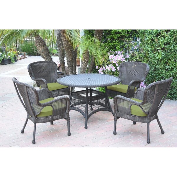 5 Piece Windsor Espresso Wicker Dining Set with Green Cushion (Discontinued)