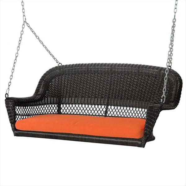 Espresso Wicker Porch Swing With Orange Cushion