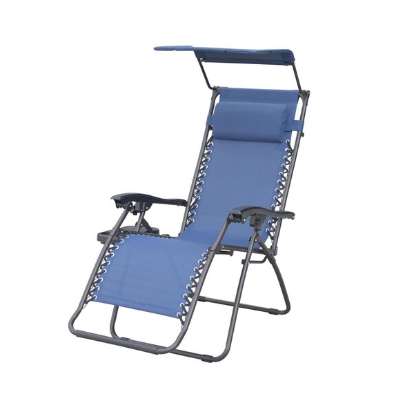 Marina Zero Gravity Chair with Sunshade Pillow & Drink Tray, Navy Blue