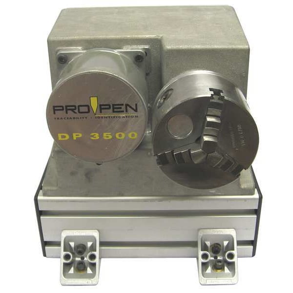 Rotational Chuck Device, For Use With Mfr. No. P5000PN, P5000EM, P5000ZEM, Overall Dimensions 9.488 in L x 8.779 in W x 6.220 in H, Chuck Type Manual, Features Mark Around the Circumference or Along Axis, Mark upto 8.82 lb Part, Right or Left Mounting, Includes Connector Cable, Jaws, No. Marking Fields per Plate 0, Plate Thickness Varies by Piece, Rotating Speed 5 to 240 turns/min, Voltage 0.478260869 V