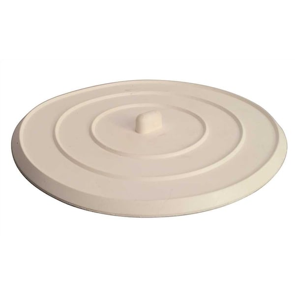 Constructed of a durable rubber for longevity. Flat suction style allows for maximum room within your sink. Designed for use in kitchen or bathroom sinks.White rubberFits 5 in. tub drainDesigned for sinks and bathtubsSuction typeRubber constructionPull tab to remove stopper
