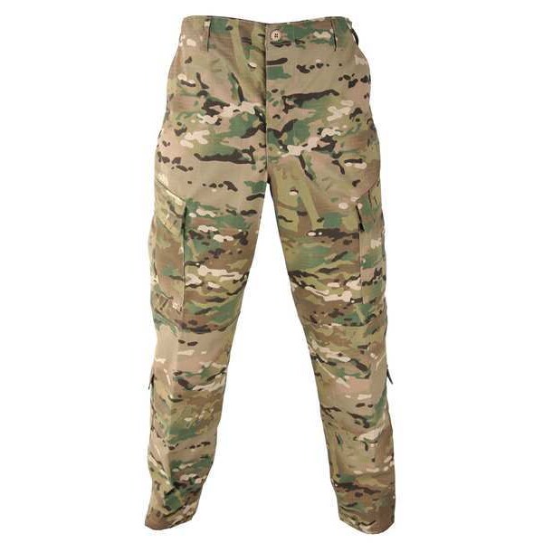 Mens Tactical Pant, Material 65 Percent Polyester/35 Percent Cotton Ripstop, Color Multicam, Size M Short, Fits Waist Size 31 to 34 In., Inseam 26-1/2 to 39-1/2 In., Pockets Y, Fabric Weight 6.5 oz