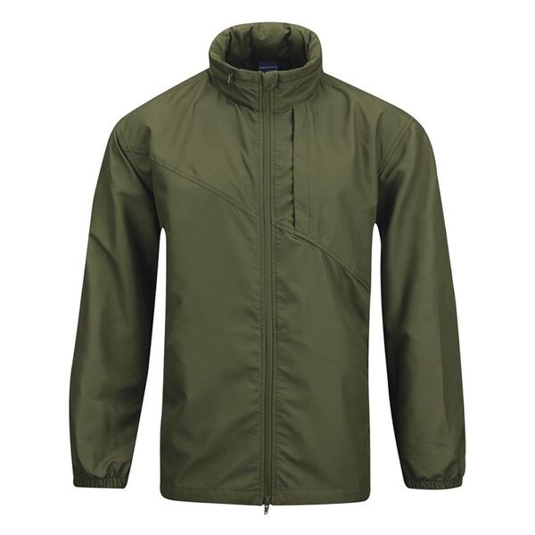 Packable Unlined Wind Jacket, Size L, Color Olive, Material 100 Percent Textured Polyester with Durable Water Repellent, Fits Chest Size 42 In. to 44 In., Sleeve Length 35-1/2 In., Garment Style Jacket, Fabric Weight 2.5 oz., Binding Two Way Zipper, Neck Size 16 In. to 16-1/2 In., Pockets 4, Type Regular