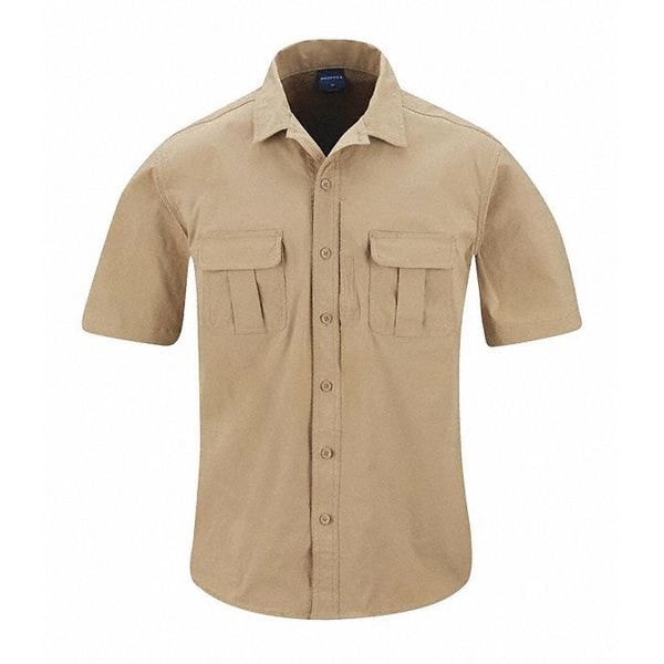 Short Sleeve Tactical Shirt, 6% Spandex, 94% Nylon, Button, 4 Pocket(s), Khaki, M