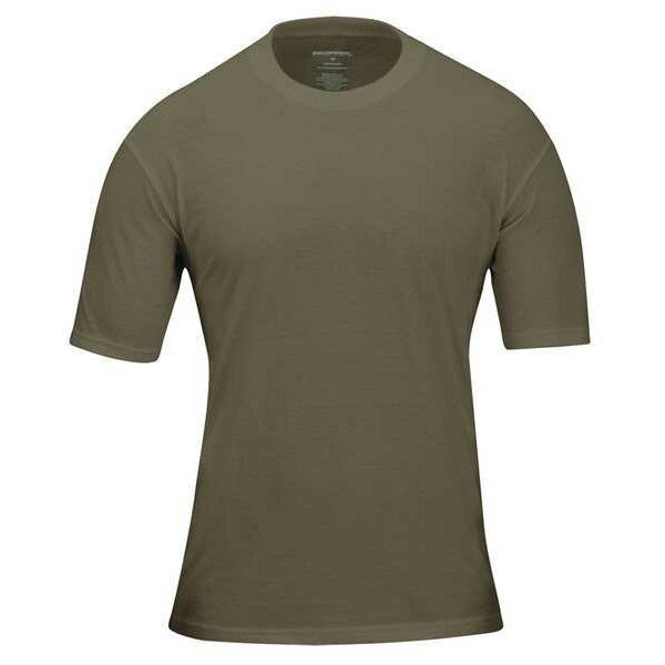 T-Shirt, Gender Men's, Style T-Shirt, Material 40 Percent Polyester, 60 Percent Cotton, Fabric Weight 4.3 oz, Front Closure Type Pull-Over, Number of Outside Pockets 0, Color Green, Sleeve Length 34 in to 34 1/2 in, Size M, Minimum Neck Size 15 in, Maximum Neck Size 15 1/2 in, Maximum Chest Size 40 in, Minimum Chest Size 38 in, Length 29 in, Collar Style Lay Flat, Features Comfortable Moisture Wicking Jersey Fabric, Lie Flat Crew Neck Collar, Tagless Label, Moisture-Wicking Yes