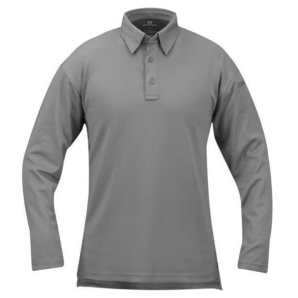 Tactical Polo, Size M, Gray, Fits Chest Size 38 In. to 40 In., Garment Style Tactical Polo, Inseam 36-1/2 In., Material 94 Percent Polyester/6 Percent Spandex, Fabric Weight 8.0 oz., Pockets 1, Type Long Sleeve, Includes Mic Clips on Both Shoulders and Sunglasses Clip Under Placket, Gusseted Mesh Underarm, Extended Length