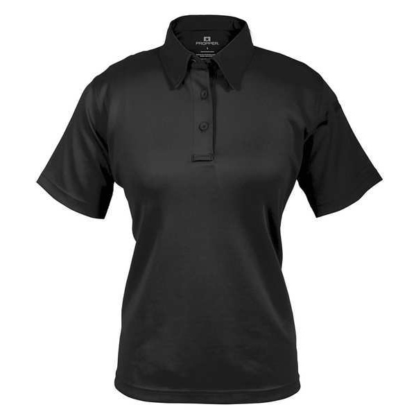Tactical Polo Shirt, 6% Spandex, 94% Polyester, Short Sleeve Length, Black