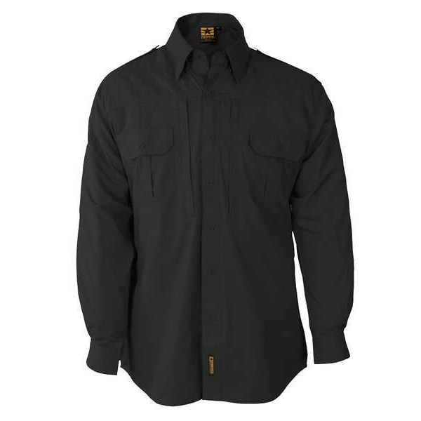 Tactical Shirt, Long Sleeve, Material 65 Percent Polyester/35 Percent Cotton Ripstop Lightweight, Color Black, Size M Long, Neck Size 17 In., Fits Chest Size 48 In., Sleeve Length 34-1/2 In., Pockets Y, Fabric Weight 4 oz