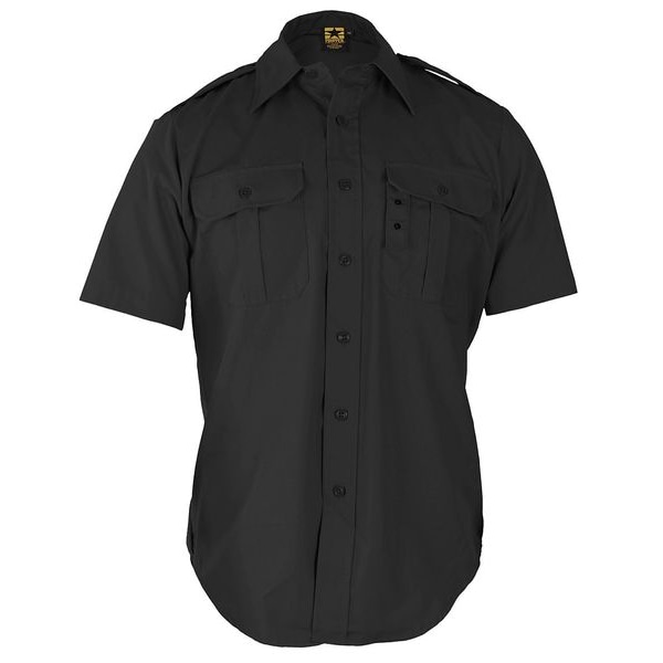 Tactical Shirt, Short Sleeve, Material 65 Percent Polyester/35 Percent Cotton Ripstop, Color Black, Size M Reg, Neck Size 16-1/2 In., Fits Chest Size 37 to 40 In., Sleeve Length 10-5/8 In., Pockets Y, Fabric Weight 6.5 oz