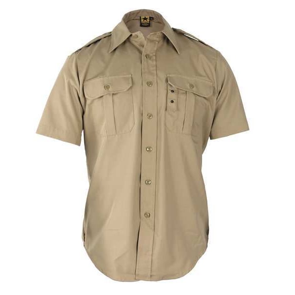 Tactical Shirt, Short Sleeve, Material 65 Percent Polyester/35 Percent Cotton Ripstop, Color Khaki, Size M Reg, Neck Size 16-1/2 In., Fits Chest Size 37 to 40 In., Sleeve Length 10-5/8 In., Pockets Y, Fabric Weight 6.5 oz