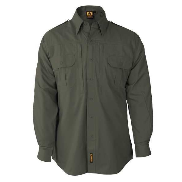 Tactical Shirt, Long Sleeve, Material 65 Percent Polyester/35 Percent Cotton Ripstop Lightweight, Color Olive, Size M Reg, Neck Size 17 In., Fits Chest Size 48 In., Sleeve Length 36-1/2 In., Pockets Y, Fabric Weight 4 oz