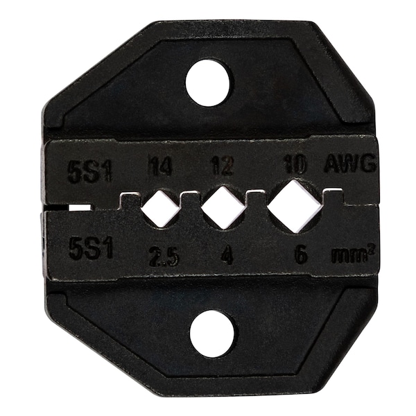 Upper and Lower Crimping Die, Compatible Connector Type Solar Terminal, Compatible Cable Type Wire, Number of Crimping Sizes 3, Number of Pieces 1, Maximum Crimping Force Not Rated, Compatible with Brand Universal, Compatible Grainger Part Number Universal, Compatible Manufacturer Part Number Universal, Compatible with Series Lunar, Application Electrical Wire Crimping, Crimping Capacity 10 AWG, 12 AWG, 14 AWG, Includes Die Set, Thumb Screws