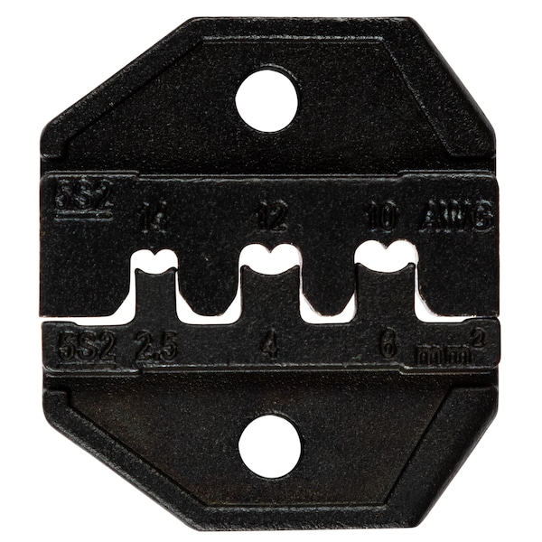 Upper and Lower Crimping Die, Compatible Connector Type Solar Terminal, Compatible Cable Type Wire, Number of Crimping Sizes 3, Number of Pieces 1, Maximum Crimping Force Not Rated, Compatible with Brand Universal, Compatible Grainger Part Number Universal, Compatible Manufacturer Part Number Universal, Compatible with Series Lunar, Application Electrical Wire Crimping, Crimping Capacity 10 AWG, 12 AWG, 14 AWG, Includes Die Set, Thumb Screws