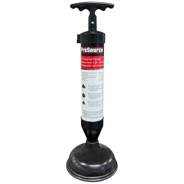 Easy-to-use air powered plunger, unclogs toilets and sinks with the push of a handle, includes toilet and sink drain plunger attachments.