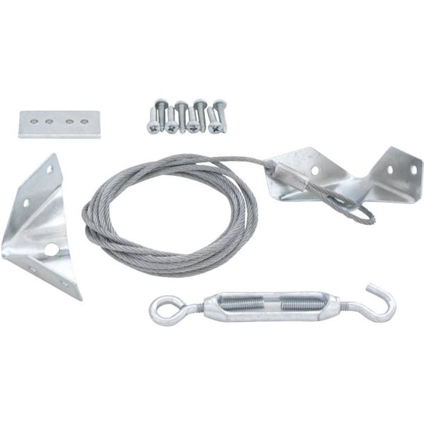 The ProSource anti-sag gate kit eliminates gate sag. Its made of steel and includes two corner braces, two pairs of cable clamps, one hook and eye turnbuckle and one 90 in stranded steel cable and fastener.