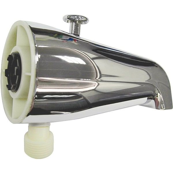 Bathtub Spout with Diverter, 5-1/4 in L, 3/4 x 1/2 in Connection, IPS, Zinc, Chrome Plated