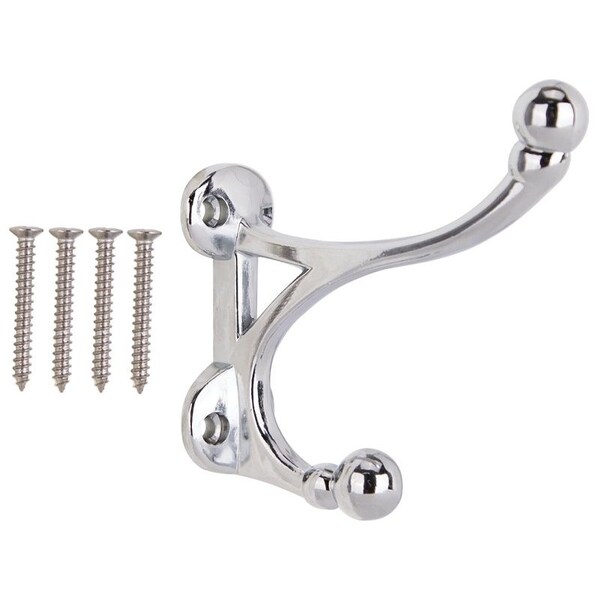 Coat and Hat Hook, 33 lb, 2-Hook, 1-1/2 in Opening, Zinc, Chrome