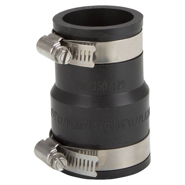 Coupling, 1-1/2 x 1-1/4 in, PVC, Black