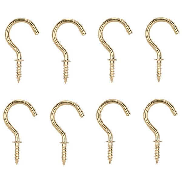 Cup Hook, 1/8 in Thread, 33 mm L, Brass, Brass Plated