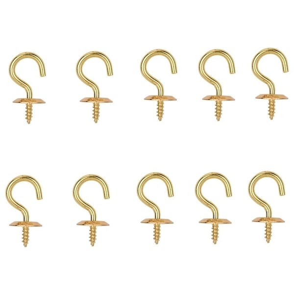 Cup Hook, 9/32 in Opening, 2.5 mm Thread, 5/8 in L, Brass, Brass