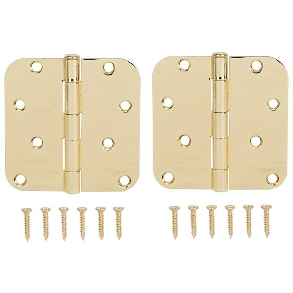 Door Hinge, Steel, Bright Brass, Loose Pin, 180 deg Range of Motion, Screw Mounting