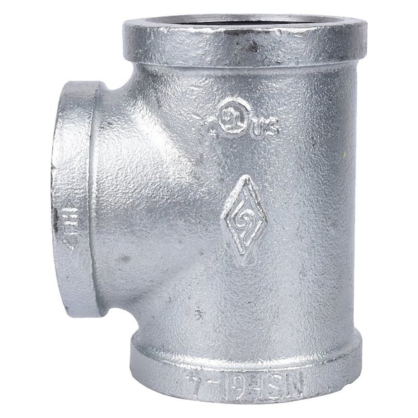 This galvanized tee is used to change direction in piping for use with water or steam It meets ANSI standard with flat banded, right hand threads standard screw