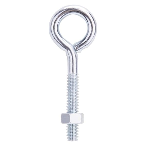 Eye Bolt, 4.8 mm Thread, Machine Thread, 1 in L Thread, 3/4 in Dia Eye, 79 lb Working Load, Steel, Zinc