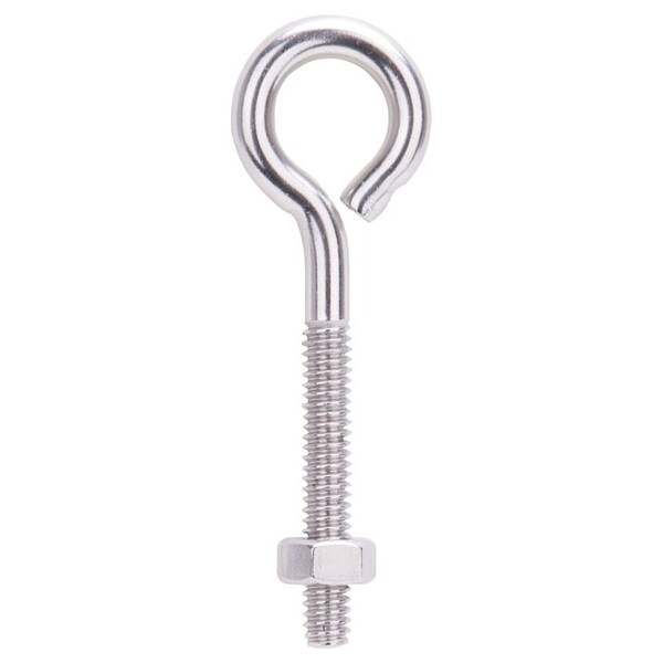Eye Bolt, 6.2 mm Thread, Machine Thread, 1-1/2 in L Thread, 1 in Dia Eye, 196 lb Working Load