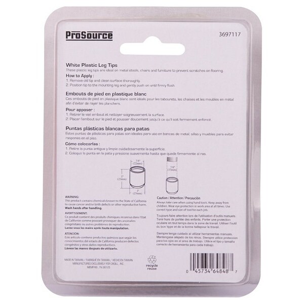 The ProSource furniture leg tip plastic leg tips can be used on stools, chairs and furniture legs. Helps protect floors from being scratched.