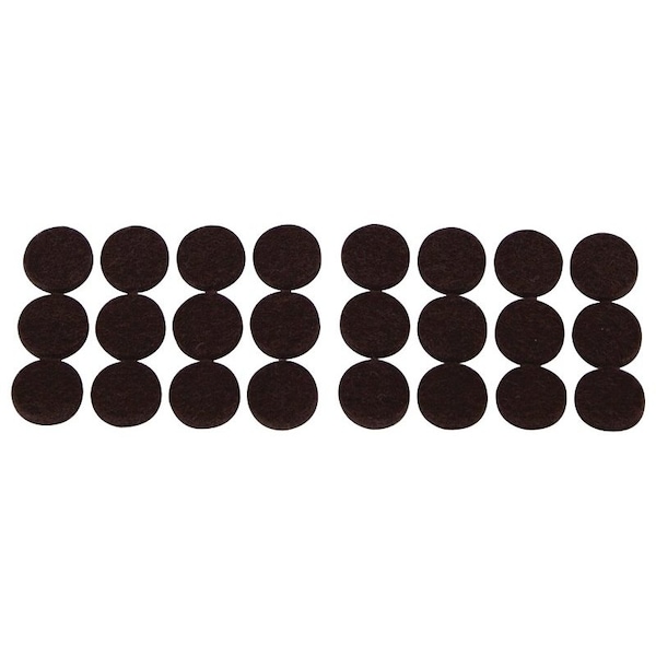 Furniture Pad, Felt Cloth, Brown, 1/2 in Dia, 5/64 in Thick, Round
